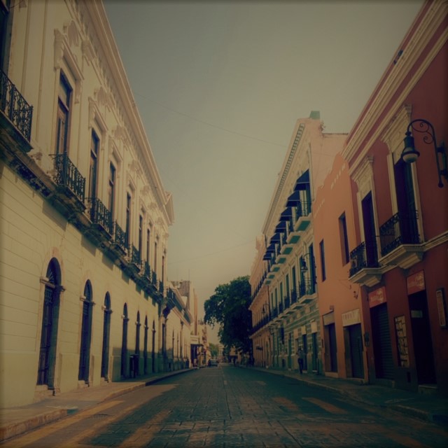 Visitar el Centro Histórico de la Ciudad de Mérida en esta pandemia deja una extraña sensación: como si todo estuviera dentro de una botella de cristal y el sol fundiera a las pocas personas que caminan en la calle. Tengo para mi sola todos los edificios principales que la conforman, pero lo que no tengo es ese entusiasmo de tomar fotografias de cada uno de ellos, siento que al hacerlo plasmaré la soledad inminente que desgarra todas las paredes y las calles; el tapabocas que llevo comienza sofocarme y los recuerdos de Mérida en Domingo, La Noche Blanca y demás eventos que se llevan a cabo en el Centro Cultural Olimpo, pasan ante mis ojos con la misma rapidez que me pongo el gel en las manos cada vez que toco algún objeto en la calle. Giro mi cuerpo para enfocar la emblematica Calle 60: mis pensamientos se fugan como la interminable nostalgia de esa mañana. Al final respiro hondo y tomo algunas fotos en donde el sol les deja un brillo lacerante y, en otras se instala la esperanza…